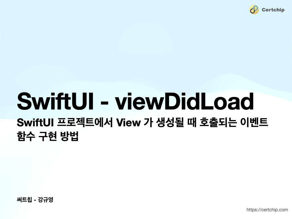 이번 시간에는 SwiftUI 프로젝트에서 viewDidLoad 처리 구현 방법을 알아 보도록 할께요.